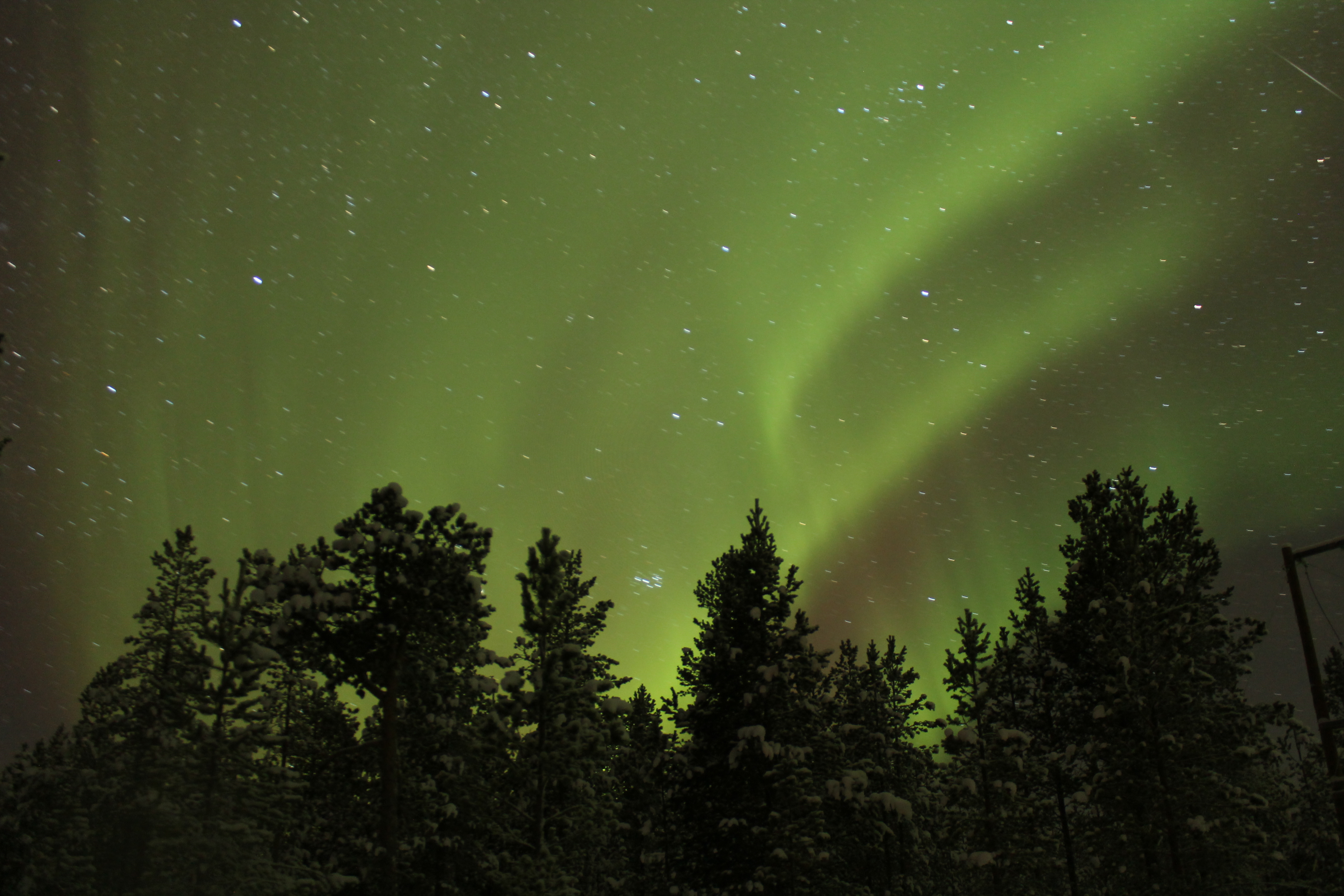 That evening I went after dinner outside my cottage accommodation to take a test shot. Weather conditions were good -30 degrees, clear sky, stars shining and optimism. On my camera display, I saw green lines and strong signs of Aurora.